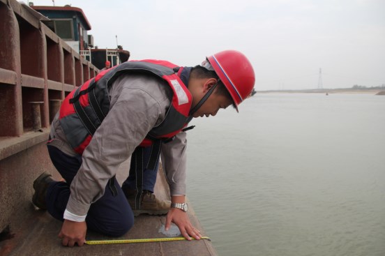 第二場(chǎng)比賽項(xiàng)目是量船。他們手持測(cè)量工具,身手敏捷,動(dòng)作規(guī)范,測(cè)量手法干凈利落。他們憑借著平時(shí)工作經(jīng)驗(yàn)熟練地進(jìn)行測(cè)量,心中都暗暗較著勁,發(fā)揮著自己的最佳狀態(tài)。