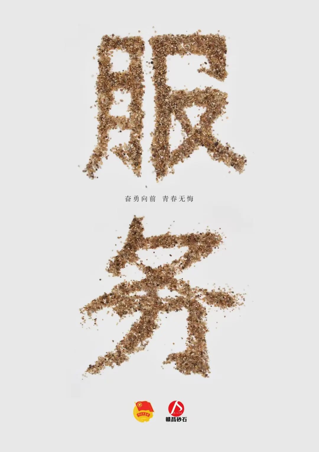 作品解讀:“青春夢(mèng)想 服務(wù)人民”系列作品是使用贛昌砂石公司四種不同的砂石衍生產(chǎn)品,組成文字,蘊(yùn)含著砂石公司砂石產(chǎn)品始終堅(jiān)持服務(wù)為民的宗旨,也蘊(yùn)含著年輕的砂石公司為了發(fā)展的砂石夢(mèng)想。