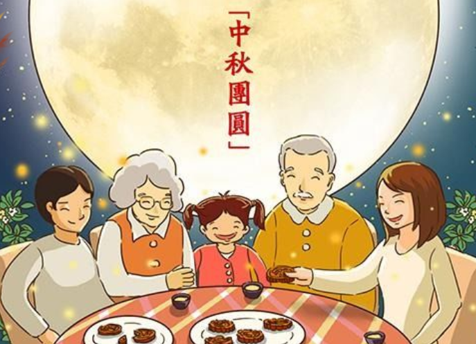 在皎潔的月光下忙碌著準備團圓的飯菜