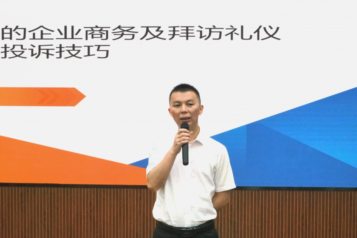 本次培訓(xùn)邀請(qǐng)到專業(yè)培訓(xùn)導(dǎo)師張坤老師現(xiàn)場(chǎng)授課,授課從搭建禮儀增效思維、營(yíng)造商務(wù)場(chǎng)景“視覺(jué)錘”、打造禮儀增效黃金法則、提升投訴處理應(yīng)對(duì)技巧等四個(gè)方面展開(kāi),從實(shí)戰(zhàn)角度出發(fā),使大家清晰明了的掌握不同場(chǎng)合的禮儀知識(shí)與溝通技巧。