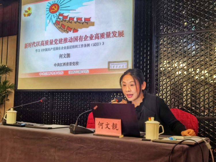 在講課中,中共江西省委黨校何文靚副教授以“筑牢中國(guó)長(zhǎng)治久安的根基——十九屆四中全會(huì)精神解讀”和“新時(shí)代以高質(zhì)量黨建引領(lǐng)國(guó)有企業(yè)高質(zhì)量發(fā)展”為題,從四個(gè)方面與學(xué)員們進(jìn)行了學(xué)習(xí)交流:一是提高站位,深刻認(rèn)識(shí)十九屆四中全會(huì)的重大意義;二是深刻領(lǐng)會(huì),準(zhǔn)確把握十九屆四中全會(huì)關(guān)于國(guó)資國(guó)企改革的新動(dòng)向;三是真抓實(shí)干,全面推進(jìn)國(guó)企治理體系和治理能力現(xiàn)代化;四是化危為機(jī),努力完成全年各項(xiàng)既定任務(wù)目標(biāo)。