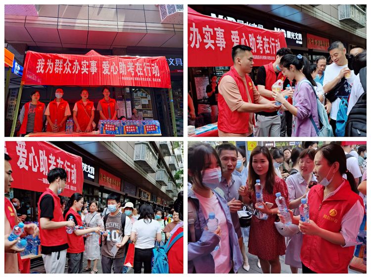 在炎炎烈日下,小小的一瓶礦泉水,不僅為赴考的莘莘學子及家長們送上一份清涼和關愛,也為學子們加油助威,飽含了大家對考生“順風順水”的祝福。