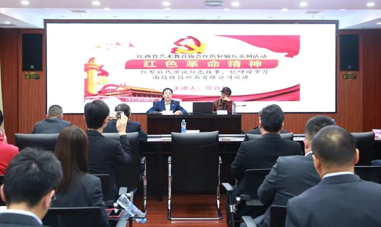 本次活動有幸邀請了革命老紅軍的后代--羅合毅老師進行授課,由贛昌砂石公司黨委副書記、常務副總朱鳳主持。參加人員為贛昌砂石公司在家領導班子、江西省藝術協(xié)會成員、各支部黨員共計76人。