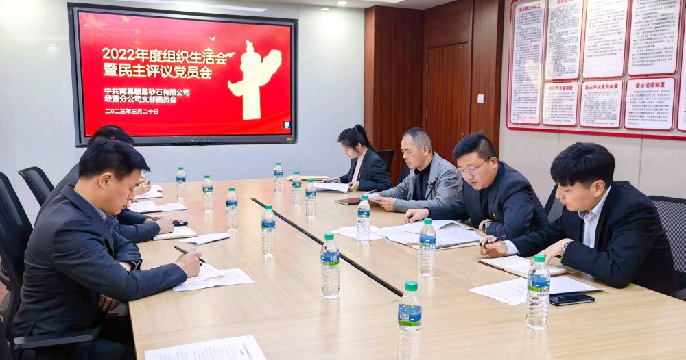 3月20日上午,南昌贛昌砂石有限公司經(jīng)營分公司黨支部在公司24樓黨員活動(dòng)室召開2022年度組織生活會(huì)暨民主評議黨員大會(huì)。南昌贛昌砂石有限公司總經(jīng)理助理葉劍飛出席會(huì)議。會(huì)議由黨支部書記熊志主持,黨支部全體黨員參加。
