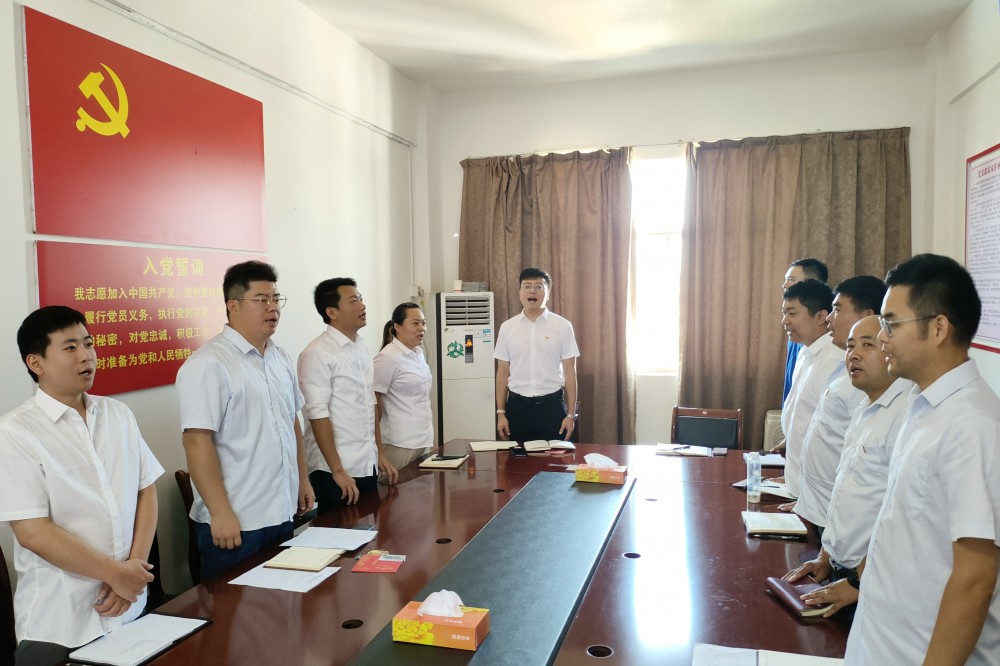 活動中,全體黨員面向黨旗,舉起右手,莊嚴地重溫入黨誓詞,回顧入黨初心,用錚錚誓言強化理想信念、增強黨性觀念、銘記黨紀黨規(guī)。