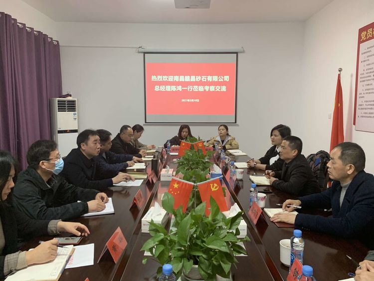 3月10日,贛昌砂石公司總經(jīng)理陳鴻,公司總經(jīng)理助理葉劍飛,公司副總工程師、配送服務(wù)中心負責(zé)人饒燕一行前往江西省贛撫建材資源開發(fā)有限公司交流學(xué)習(xí)。