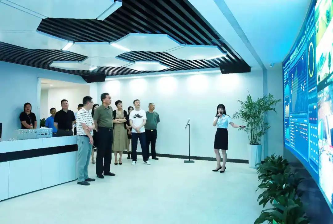 鄧建新一行參觀了贛昌砂石公司辦公大樓,并在監(jiān)控指揮中心通過監(jiān)控視頻視察了一線生產(chǎn)經(jīng)營情況,詳細地了解了砂石出庫流程。