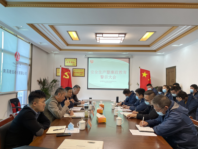 為進(jìn)一步加強(qiáng)安全生產(chǎn)及廉政教育工作,11月10日贛昌砂石公司進(jìn)賢縣分公司組織召開了安全生產(chǎn)暨廉政教育警示大會(huì),增強(qiáng)員工的安全生產(chǎn)意識(shí)及拒腐防變的能力,為公司穩(wěn)步發(fā)展提供堅(jiān)強(qiáng)有力的保證。贛昌砂石公司總經(jīng)理陳鴻、副總經(jīng)理劉捷、紀(jì)委副書記黃中堯出席會(huì)議,會(huì)議由總經(jīng)理助理蔡安煜主持。監(jiān)審部、安保部、市場(chǎng)部相關(guān)人員陪同,進(jìn)賢縣分公司中層干部班組及全體員工參加會(huì)議。