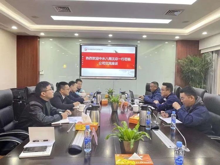 11月15日上午,中國水利水電第八工程局-贛江下游尾閭綜合整治工程設(shè)計(jì)、采購、施工總承包項(xiàng)目部總經(jīng)濟(jì)師沈偉一行來到南昌贛昌砂石有限公司進(jìn)行交流座談,贛昌砂石公司黨委書記、董事長唐曉飛,副總經(jīng)理張軍茂、胡蓉及市場部、砂方開挖部相關(guān)人員參加座談會。