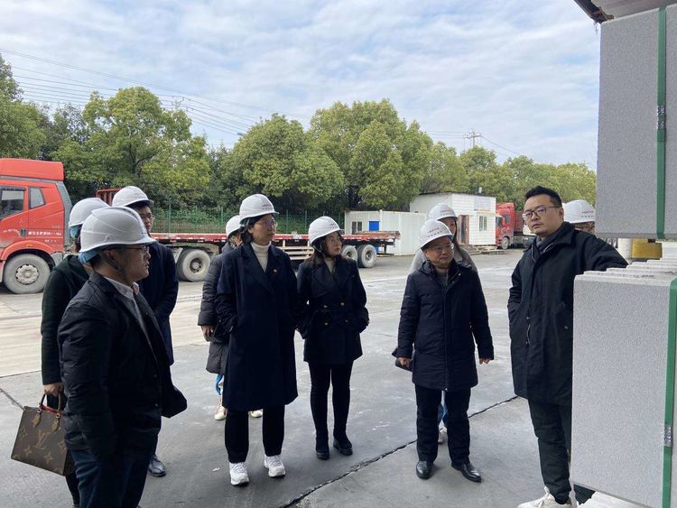 在杭加新材公司,陳鴻一行前往廠區(qū)實地察看了其主營產品AAC板和具體生產流程工藝等,并與對方負責人就AAC板材中砂石使用情況,以及建材上下游產業(yè)鏈未來發(fā)展趨勢進行了充分的探討交流。