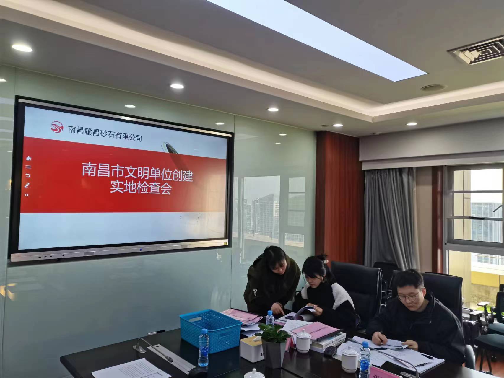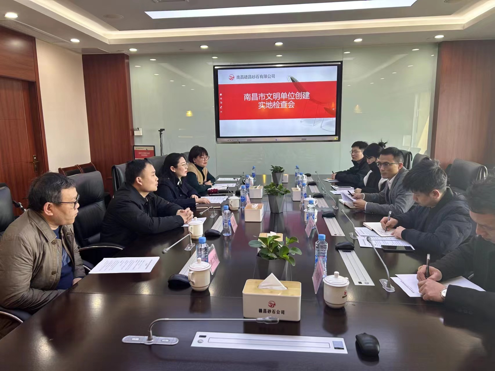2月21日下午,南昌市創(chuàng)建指導(dǎo)科副科長殷艷華、東湖區(qū)文明辦主任占定明一行五人,對贛昌砂石文明創(chuàng)建工作進行實地檢查。贛昌砂石黨委副書記、總經(jīng)理李驍,黨委副書記、常務(wù)副總經(jīng)理朱鳳陪同,綜合部、黨群工作部負責(zé)人參加會議。