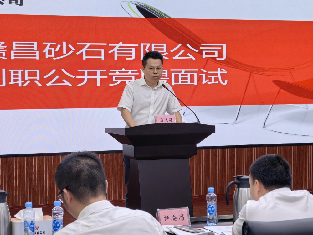 6月26日下午,在贛昌砂石公司本部舉行了公司各部門中層副職崗位公開競(jìng)聘面試會(huì)。公司黨委書記、董事長(zhǎng)唐曉飛,公司黨委副書記、總經(jīng)理李驍及公司全體班子成員,同時(shí)邀請(qǐng)交投總部人力資源部副部長(zhǎng)熊瀟一同作為評(píng)委出席會(huì)議,公司紀(jì)委全程監(jiān)督。