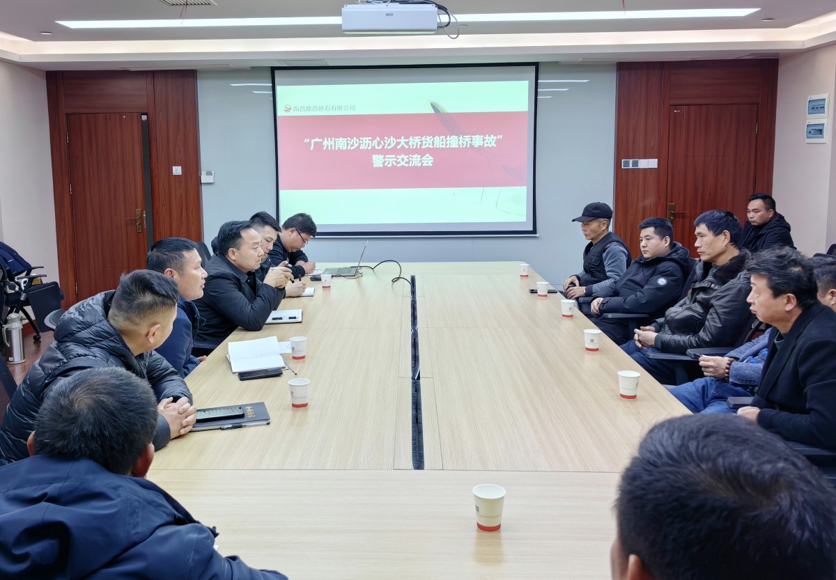 2024年2月23日上午,贛昌砂石公司組織召開廣州南沙“船撞橋”事故警示交流會。贛昌砂石公司副總經(jīng)理張軍茂、開采管理中心負責人鐘華,各航運公司、運輸船只代表參加會議。