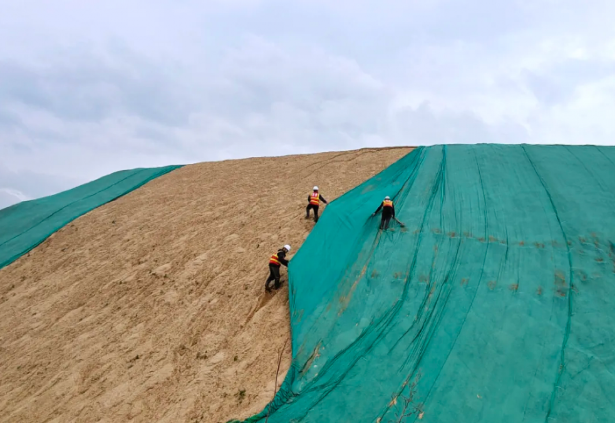 為減少強降雨大風天氣造成砂場資源流失,高新銷售中心密切關(guān)注雨情的發(fā)展趨勢,監(jiān)測水位上漲情況;積極組織員工在停雨間隙,對砂場砂石覆蓋防塵網(wǎng),降低砂石資源流失,保障公司財產(chǎn)安全。