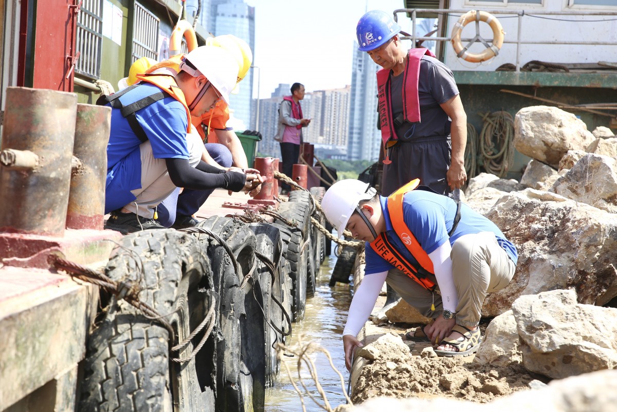 近期,南昌持續(xù)高溫,白天室外溫度最高達40余度,開啟了“暴曬+蒸籠”的模式,酷暑之下,許多人行色匆匆,穿過悶熱的熱浪,一頭扎進舒適的空調(diào)房“避暑”的時候,在贛江邊有這樣一群人,他們頭戴安全帽、身穿藍色的T恤,頂著烈日,面對酷暑,默默地堅守崗位,他們就是贛昌砂石公司負責贛江南昌城區(qū)段礙航構(gòu)筑物清理工作組的一線員工。