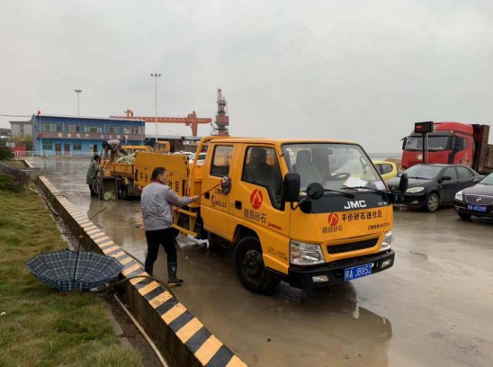 子公司建材高新分廠配合贛昌新錢崗砂廠,清理路邊泥砂
